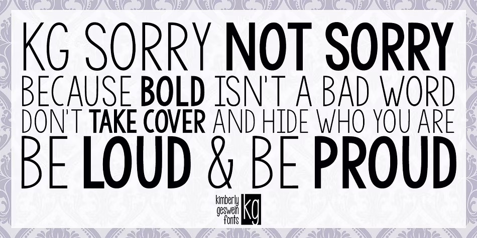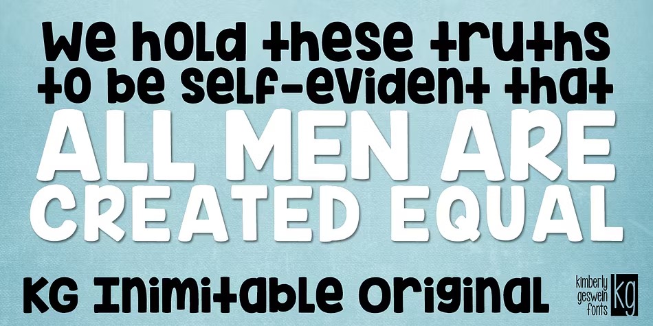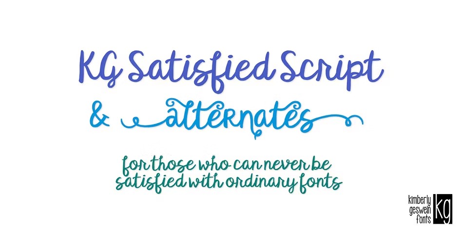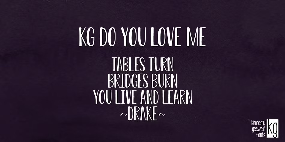 KG Ten Thousand Reasons is a charming hand-drawn font family that exudes warmth and personality. With two distinct styles to choose from, this versatile typeface offers plenty of opportunities for creative expression. Published by Kimberly Geswein Fonts, KG Ten Thousand Reasons is perfect for designers seeking a unique touch for their projects, whether it's a personal blog, a wedding invitation, or even a children's book.