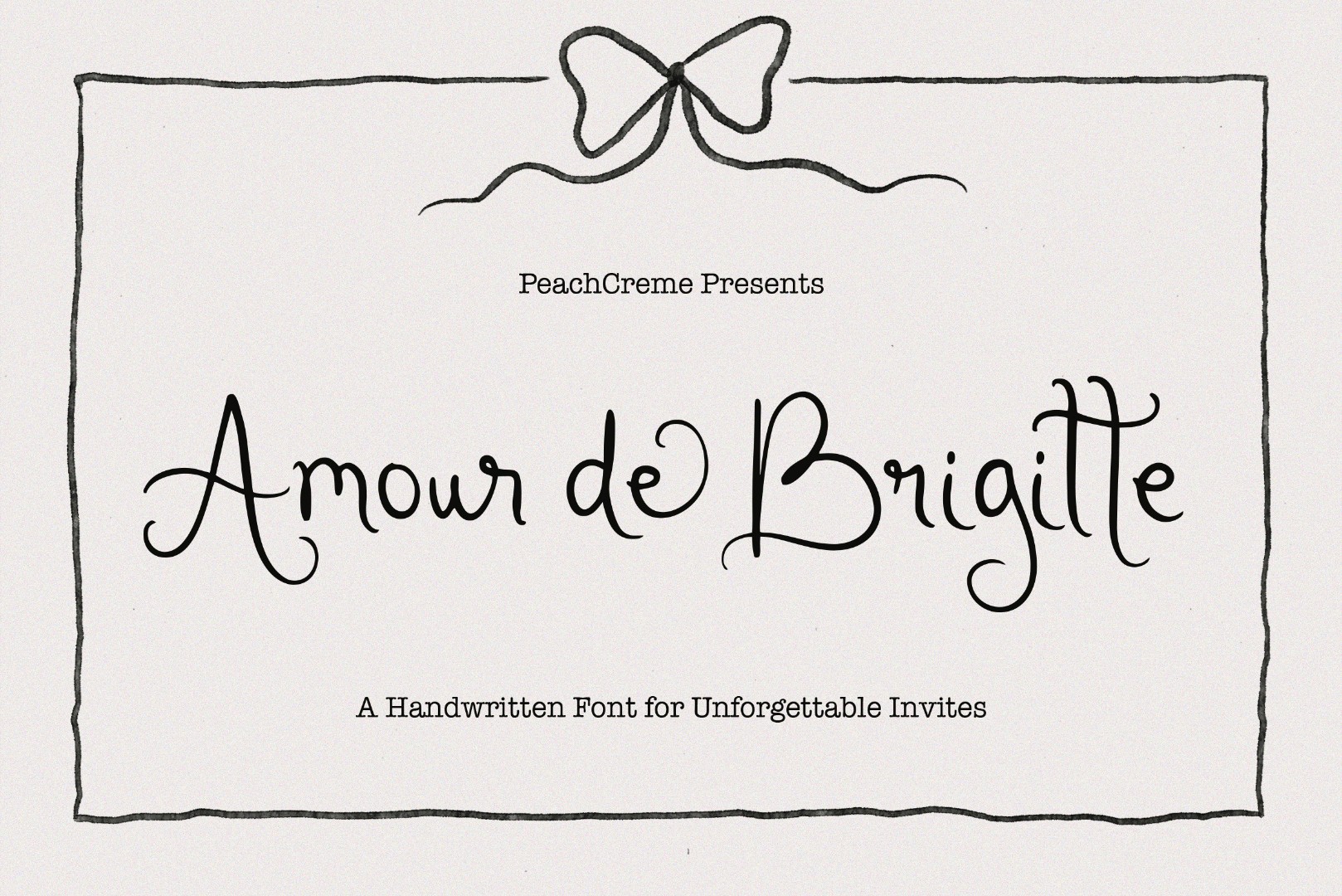"Amour de Brigitte" is a contemporary font that effortlessly blends playfulness with sophistication, making it an ideal choice for modern wedding invitations and stationery. Its character set boasts unique touches like alternative letters and swashes for lowercase letters, allowing you to customize the beginning and end of words in every application. With "Amour de Brigitte", you can add a personal touch that sets your designs apart.