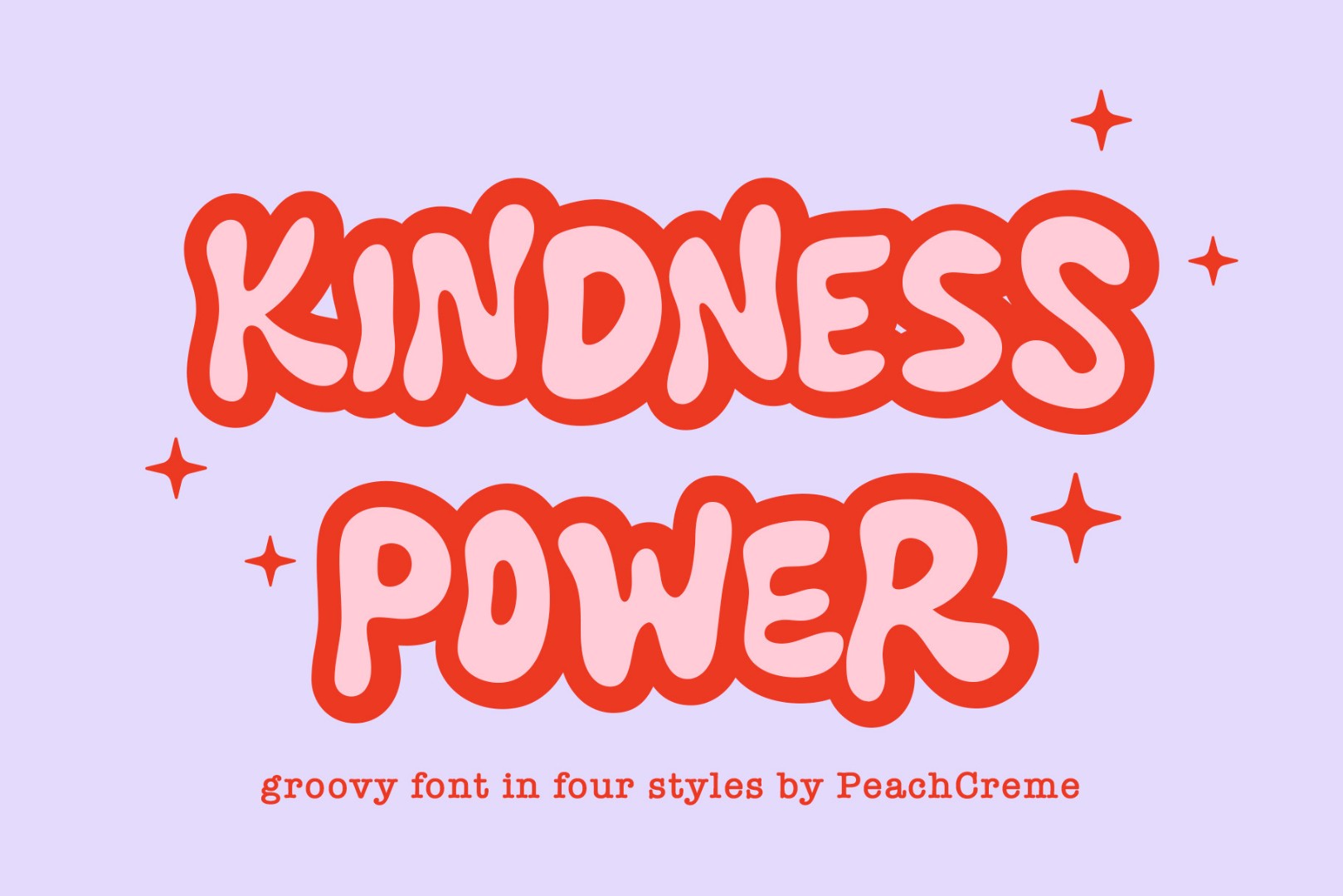 The Kindness Power font set is a groovy blend of psychedelic and funky vibes with a playful touch. This versatile set is perfect for adding a laid-back feel to your designs, making it ideal for use in logos, social media quotes, t-shirt designs, and more. With four variations to choose from, you'll be able to tie your design together in no time. Whether you're looking to add some whimsy or just want to give your project a unique touch, Kindness Power is sure to bring a smile to your face (and your audience's too!).