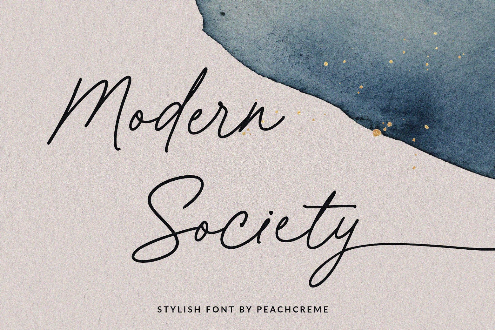 Meet Modern Society, a stylish font that combines modern flair with classic charm. This sleek font boasts adorable beginning and ending lowercase swashes that add a touch of whimsy to any design. With its complete set of uppercase and lowercase letters, symbols, numerals, punctuation, and ligatures, Modern Society is perfect for a wide range of uses, from wedding designs and logos to stationery, signatures, quotes, cards, and display text. Whether you're looking to add some sophistication or playfulness to your design, Modern Society has got you covered!
