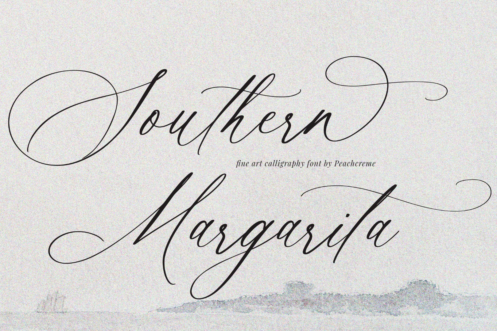 Introducing our new "Southern Margarita" font, an elegant modern script font with delicate hand letters inspired by wedding calligraphy thematics. This beautiful script features a full set of uppercase and lowercase letters, numbers, punctuation, and unique double-letter ligatures that create a natural lettering effect. Each lowercase letter also boasts a gorgeous and one-of-a-kind swash, adding an extra touch of elegance to your designs. Perfect for wedding stationery, websites, upscale packaging, and any project that calls for a refined and handwritten feel, "Southern Margarita" is sure to impress.