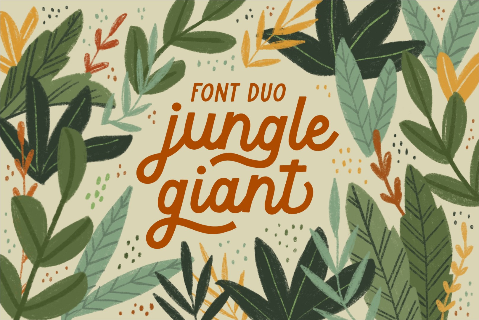 Jungle Giant is a charming font duo that embodies a playful, organic vibe perfect for branding, social media, and marketing efforts. This hand-drawn sans-serif and script combination boasts over 35 alternatives for the script, featuring swashes and alternate styles to add visual interest. The uppercase print also comes in two styles - regular and italic - allowing you to match the tilt of the script or use it as a standalone option. With its quirky charm and versatility, Jungle Giant is sure to bring a touch of whimsy to your designs.