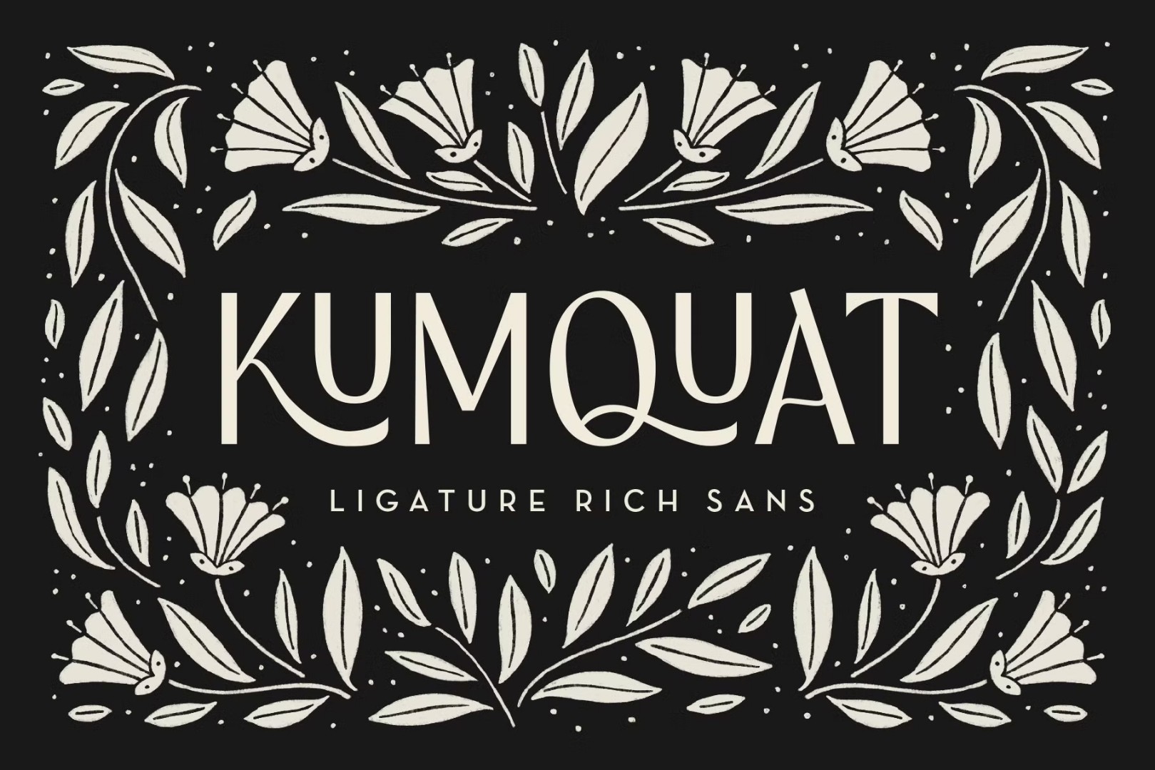 Kumquat is an elegant and sophisticated sans display font that exudes a modern yet approachable feel. Inspired by hand lettering and symmetrical floral art, this typeface boasts intricate details and ligatures that allow for customization to fit your project's needs. With 351 total glyphs, including uppercase letters, numbers, punctuation, language support, alternatives, and ligatures, you can create unique and eye-catching typography. Additionally, Kumquat includes 7 floral/leaf designs as PNG, EPS, and AI file types, perfect for adding a touch of elegance to your design. Language support is also extensive, covering Danish, English, French, German, Irish, Italian, Portuguese, Spanish, Swedish, Swiss German, and many more languages.