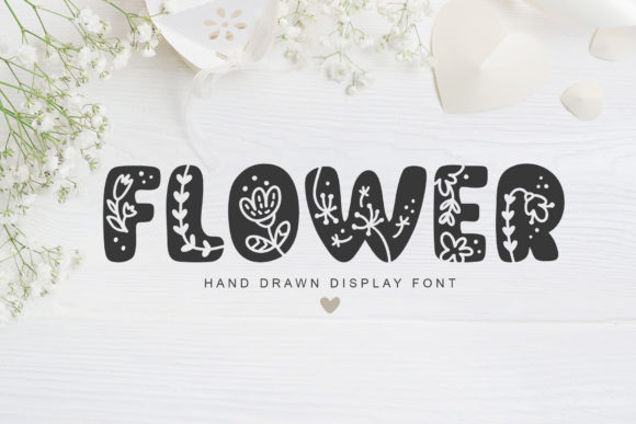 Flowers is a charming decorative font that will add a touch of sweetness and adorableness to your designs. Whether you're working on a craft project, designing a logo, or creating a greeting card, this font will surely bring a lovely and delightful result. Its unique and playful style can make your designs stand out and add a fun and cheerful vibe to any project. Give Flowers a try and unleash your creativity!