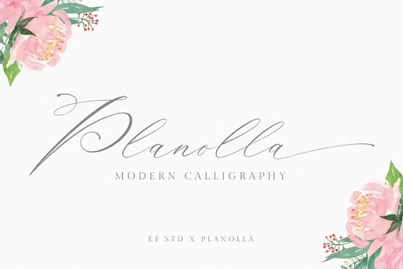 Get ready to fall in love with Planolla, a stunning modern calligraphy font that's perfect for making a statement! This beautiful collaboration between Planolla the watercolor artist and our team of designers brings together the best of both worlds - the elegance of traditional calligraphy and the versatility of digital design. With its multilingual support, ligatures, beginning and ending swashes, and PUA encoded features, Planolla is ideal for wedding invitations, branding, business cards, logos, and more. Say hello on Instagram or visit our shop to explore this amazing font further!
