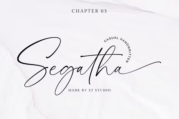 Meet Segatha, a stunning casual handwritten font that exudes elegance with its beautiful beginning and ending lowercase swashes. This lovely script features an impressive 94 ligatures that add a touch of whimsy and aesthetic flair to your designs, making it perfect for projects that demand attention to detail. Whether you're looking to brand a new venture, create one-of-a-kind invitations, or add a touch of charm to your photography, Segatha is the ideal choice.
