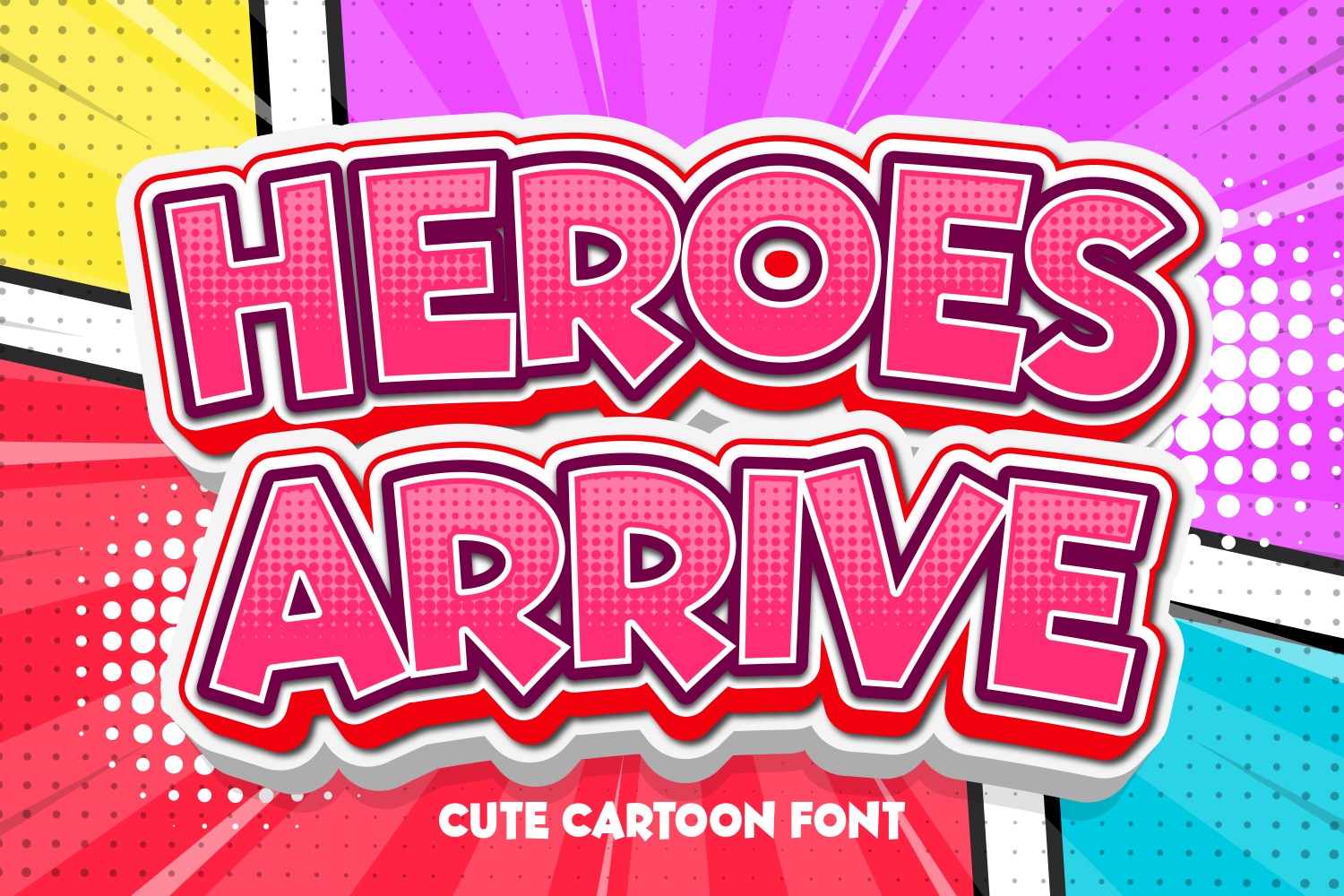 Get ready to unleash your inner superhero with Heroes Arrive, a font that's as bold as it is playful! This charming cartoon font is perfect for brands looking to convey a sense of strength, adventure, and heroism - think action-packed movies, thrilling video games, or even kids' entertainment. With its rugged yet whimsical style, Heroes Arrive is sure to capture the attention of young-at-heart audiences and inspire a sense of excitement and possibility. Whether you're a gaming company, an entertainment studio, or simply a brand looking to make a bold statement, this font is ready to save the day!