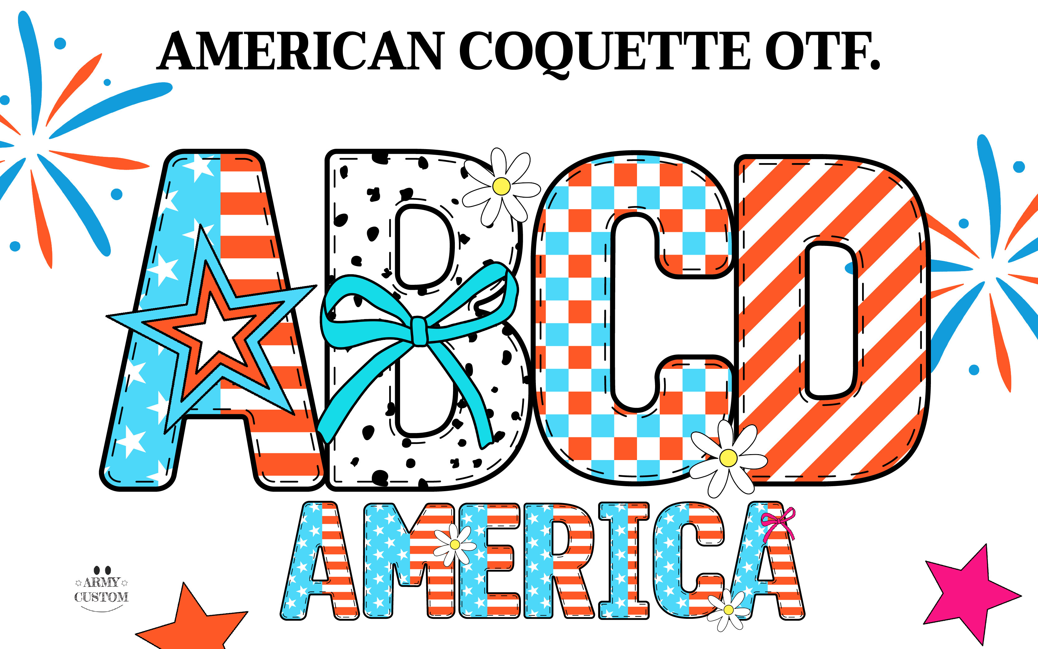 Capture the spirit of patriotism with American Coquette, a font that embodies the essence of American aesthetics. Inspired by the charm of the United States, this font is perfect for celebrating patriotic occasions and adding flair to your designs. Its unique style and elegant curves make it suitable for invitations, posters, and branding that pays homage to the Land of the Free. Use American Coquette to infuse your projects with a sense of pride and creativity, making it an ideal choice for any design that seeks to evoke an American spirit.