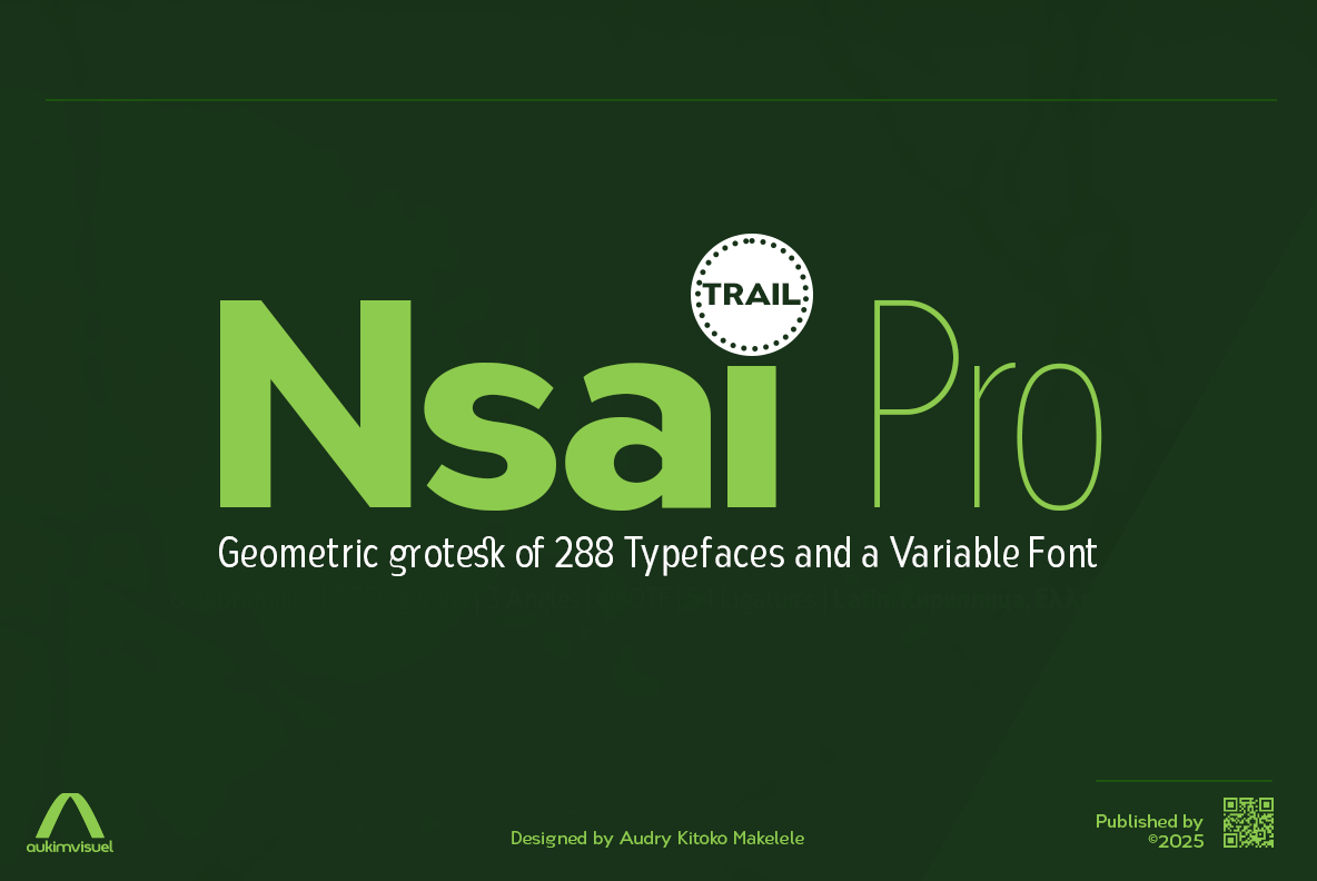 Nsai Pro is a versatile typeface family designed to excel in clarity and functionality. With a refined structure and precision, it provides an excellent solution for modern graphic applications. Featuring an extensive collection of 3,750 glyphs, it supports multiple scripts, allowing for seamless multilingual communication. The robust OpenType system includes 49 features that enhance typographic control. With six widths and sixteen weights, Nsai Pro is adaptable to various design needs, making it a valuable tool for designers, publishers, and creatives seeking a high-performance font that combines style with utility.