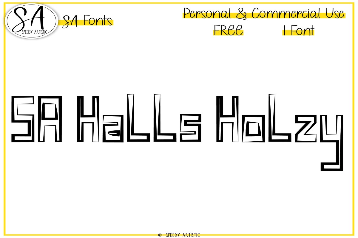 SA Halls Holzy is the perfect companion for any creative project, especially those with a spooky or whimsical tone. This enchanting font is ideal for designers who crave a diverse arsenal of fonts to bring their ideas to life. With SA Halls Holzy, you'll embark on an engaging journey that transforms your ordinary creations into something truly extraordinary. Whether you're crafting Halloween-themed products or simply looking to add some magic to your design, this font's unique charm is sure to captivate and delight.