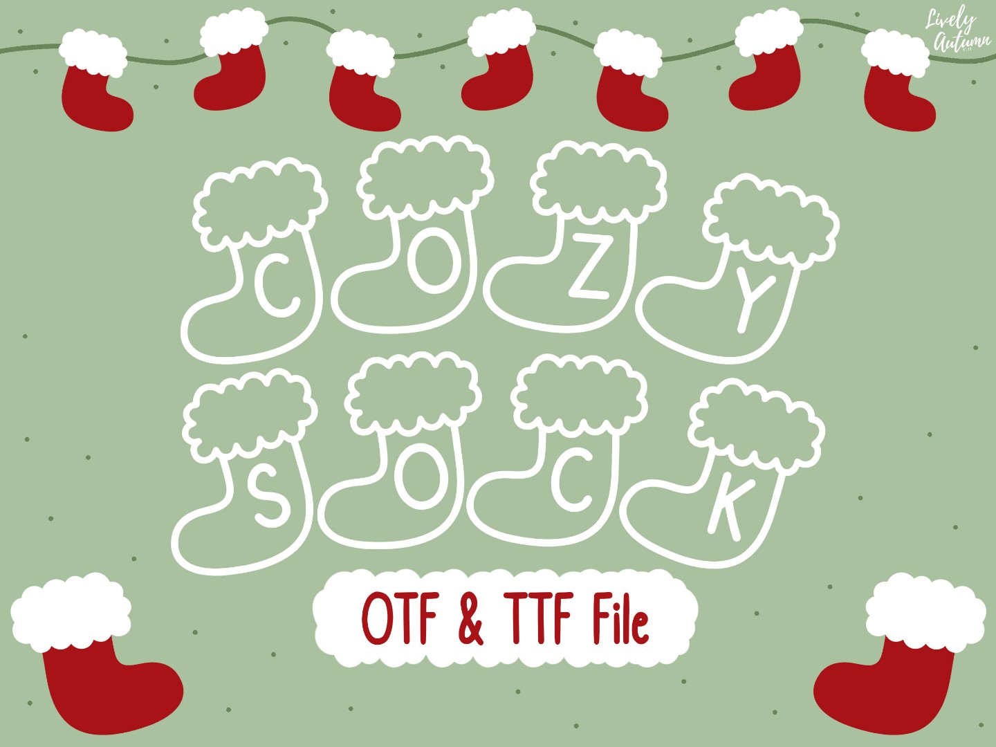 The Cozy Sock Font is a delightful addition to any project! This whimsical, decorative font features each letter snugly nestled within a charming Santa sock design. With its playful vibe, it's perfect for adding a touch of warmth and personality to your creations. Whether you're designing invitations, posters, social media graphics, journals, or anything in between, this font is sure to bring a smile to your audience's faces. Its versatility makes it an ideal choice for a wide range of projects, from holiday-themed materials to everyday designs that need a dash of fun and whimsy.
