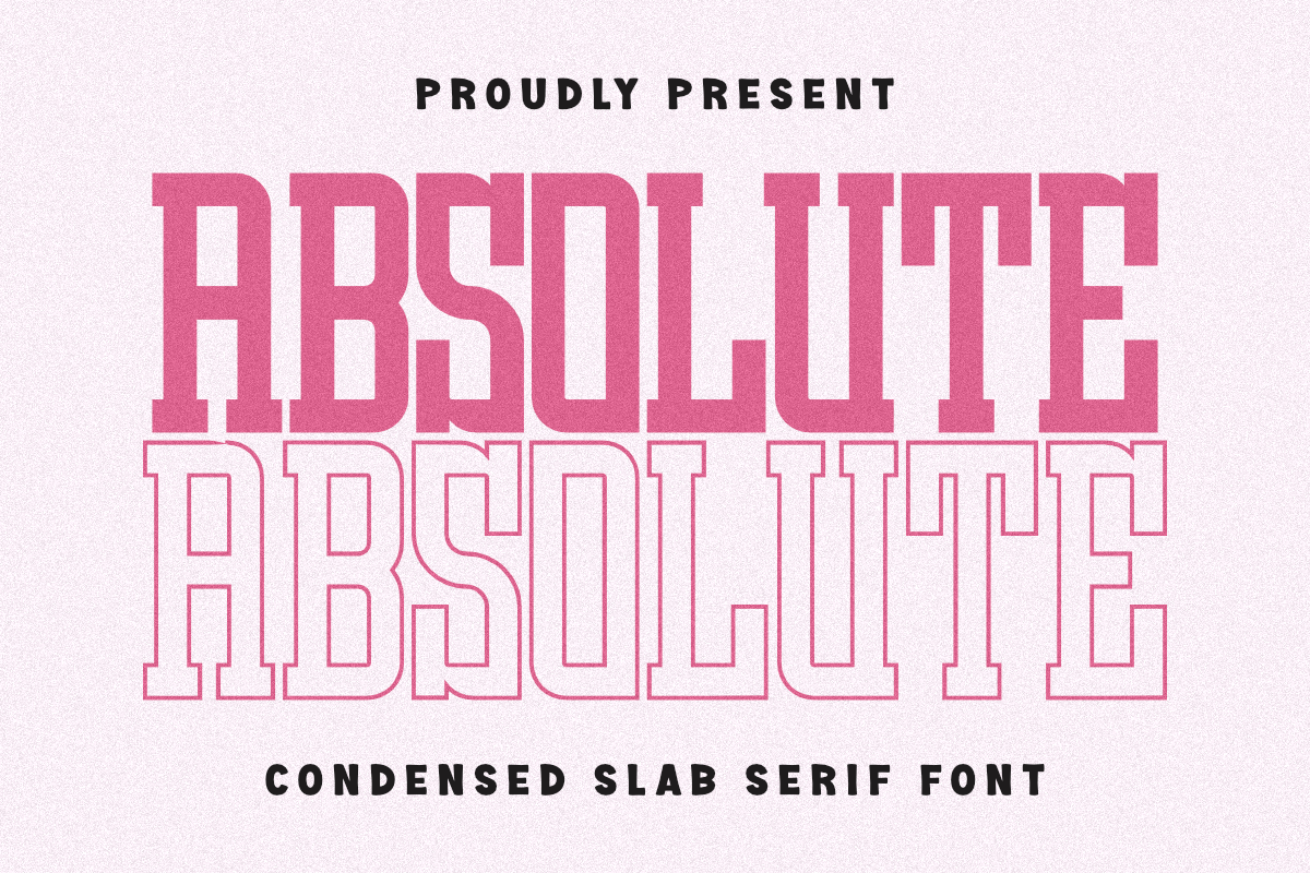 Absolute is a striking Condensed Slab Serif font that delivers both boldness and versatility. This all-caps typeface features Regular and Outline styles, making it ideal for sports branding, varsity apparel, and retro-themed designs. Its clean lines and assertive presence ensure your messages make a significant impact, whether on posters, logos, or any display project. The layered styles allow for creative color combinations, adding depth and character to your designs. With Absolute, you can achieve a vintage collegiate look that resonates with your audience, making it a powerful addition to your design arsenal.