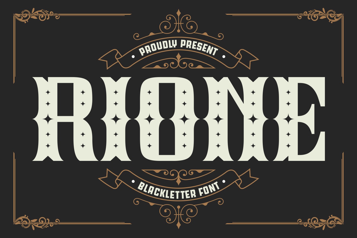 Rione is a striking blackletter font that exudes a sense of sophistication and edginess. Its clean and minimalistic design gives it a modern and streamlined appearance, making it perfect for brands that want to convey a sense of tradition, rebellion, or uniqueness. With each letter crafted with precision using clean lines and geometric shapes, Rione is sure to make a bold statement. Whether you're a tattoo parlor, rock band, or alternative fashion brand, this font is sure to give your brand the attention-grabbing look it deserves.