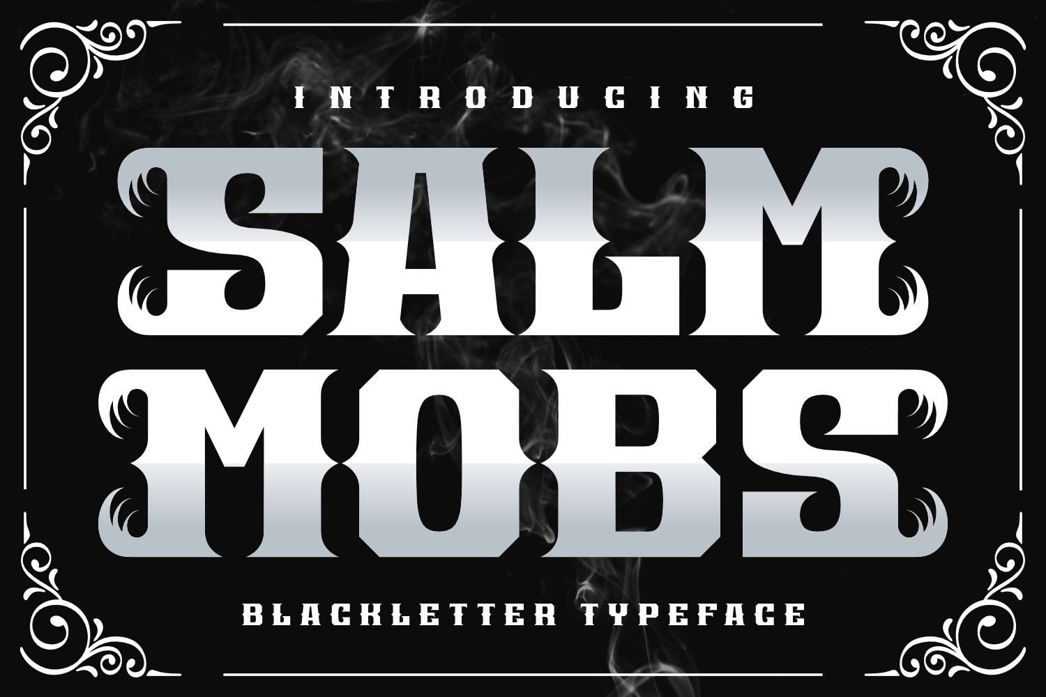 Salm Mobs is a charming blackletter font that beautifully blends the timeless elegance of traditional Gothic script with a playful, whimsical flair. This unique combination makes it an excellent choice for music albums that blend classic and contemporary styles, perfect for genres like indie rock or folk. It's also a great fit for merchandise such as T-shirts, hats, and accessories that need to stand out from the crowd. With Salm Mobs, you can add a touch of sophistication and whimsy to your design, making it perfect for any project where you want to convey a sense of fun and nostalgia.