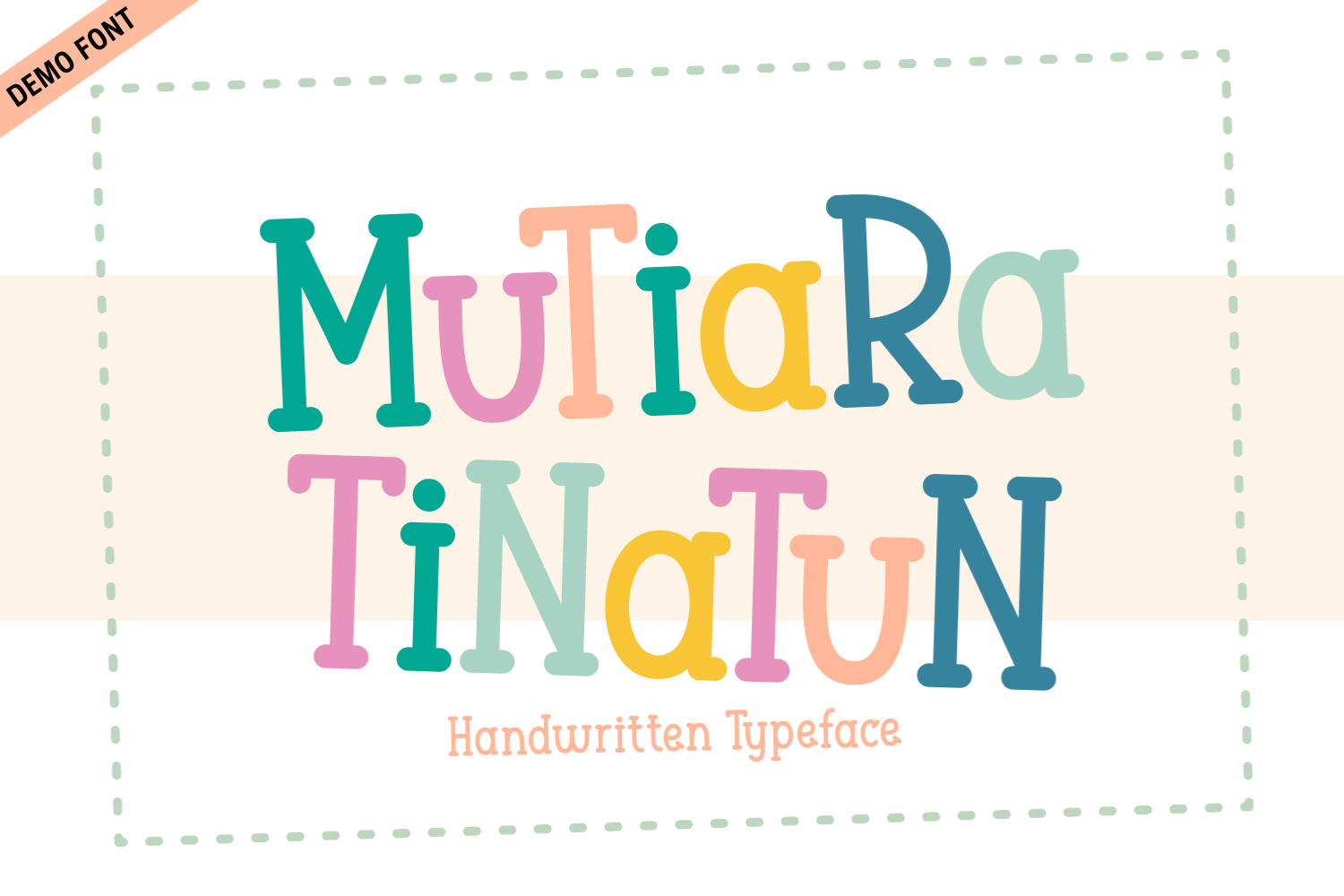 Mutiara Tinatun is a delightful handwritten font that radiates cheerful energy with its charmingly quirky design. Each letter displays a playful inconsistency, mixing upper and lowercase characters that create a lively visual rhythm. This font is perfect for projects targeting children, such as books and greeting cards, as it evokes a friendly and inviting atmosphere. Its unique personality stands out, making it an excellent choice for any design that requires a touch of creativity and fun.