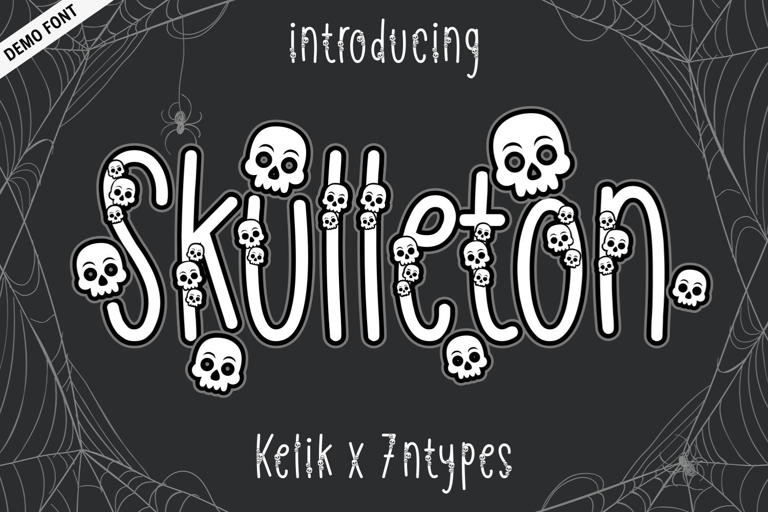 Skulleton is a fun and spooky font that captures the essence of Halloween with its playful design. Each letter features delightful skull and crossbones details, adding a whimsical yet eerie vibe. The rounded shapes and slightly wobbly baseline enhance its quirky charm, making it ideal for festive projects. Use Skulleton for party invitations, posters, or any design that needs a touch of Halloween spirit. This font is perfect for creating memorable and engaging visuals that spread joy and festive cheer.