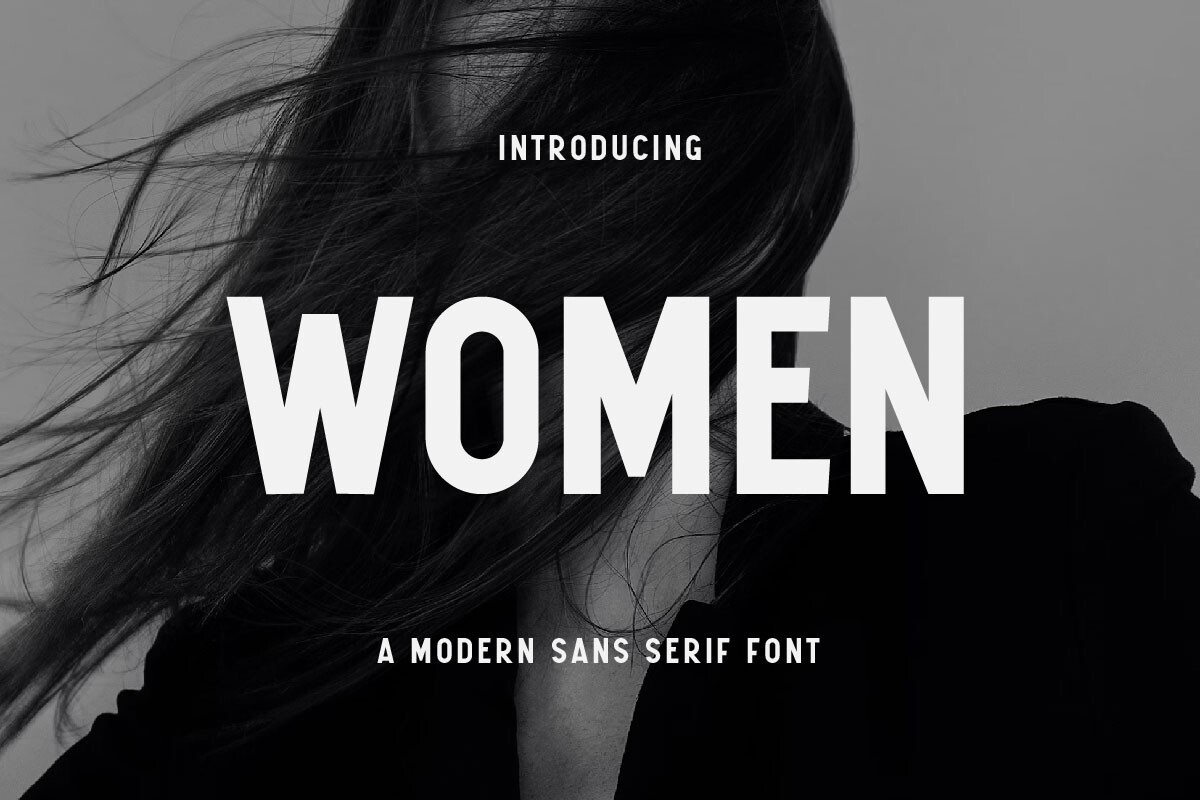 Women is a striking sans-serif font that embodies professionalism and clarity with its bold and modern design. Its clean lines and balanced proportions make it an excellent choice for both digital and print designs, ensuring legibility and visual impact. With its versatile aesthetic, Women brings a timeless sophistication to any application, guaranteeing readability and adaptability across various mediums. Whether used in corporate reports or fashion magazines, this font's professional tone and modern flair make it an ideal selection for designers seeking a reliable and eye-catching typeface.