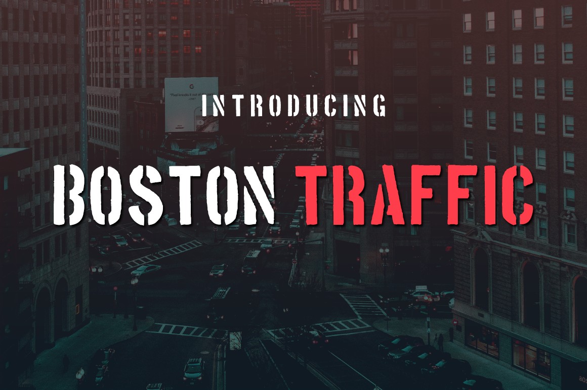 Boston Traffic is a bold and gritty stencil font that's perfect for making a statement. With its strong and disciplined design, it's ideal for use as a headline in a wide range of projects. Whether you're looking to add some edge to your next advertising campaign or want to give your blog post a rugged touch, this font is sure to get the job done. Its stencil style adds a unique texture and depth that really makes it stand out.