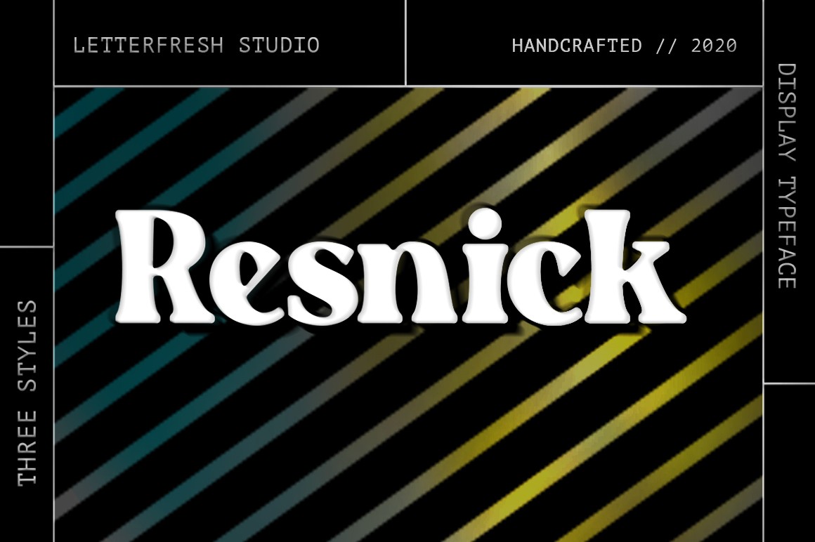 Resnick stands out as a bold, retro-styled display font, blending elegance with chunky lettering for a versatile aesthetic. Its adaptability makes it suitable for a diverse array of design concepts, effortlessly enhancing everything from logos to posters with its distinct character. Let Resnick be the versatile choice to elevate your creative projects with retro flair and bold sophistication.