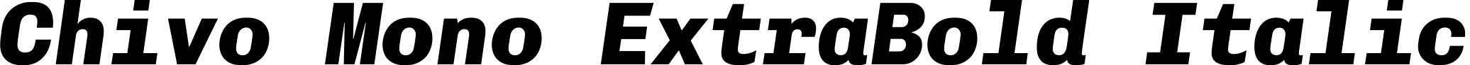 Chivo Mono ExtraBold Italic (ChivoMono-ExtraBoldItalic.ttf) is one of 20 fonts included with the font set Chivo Mono.